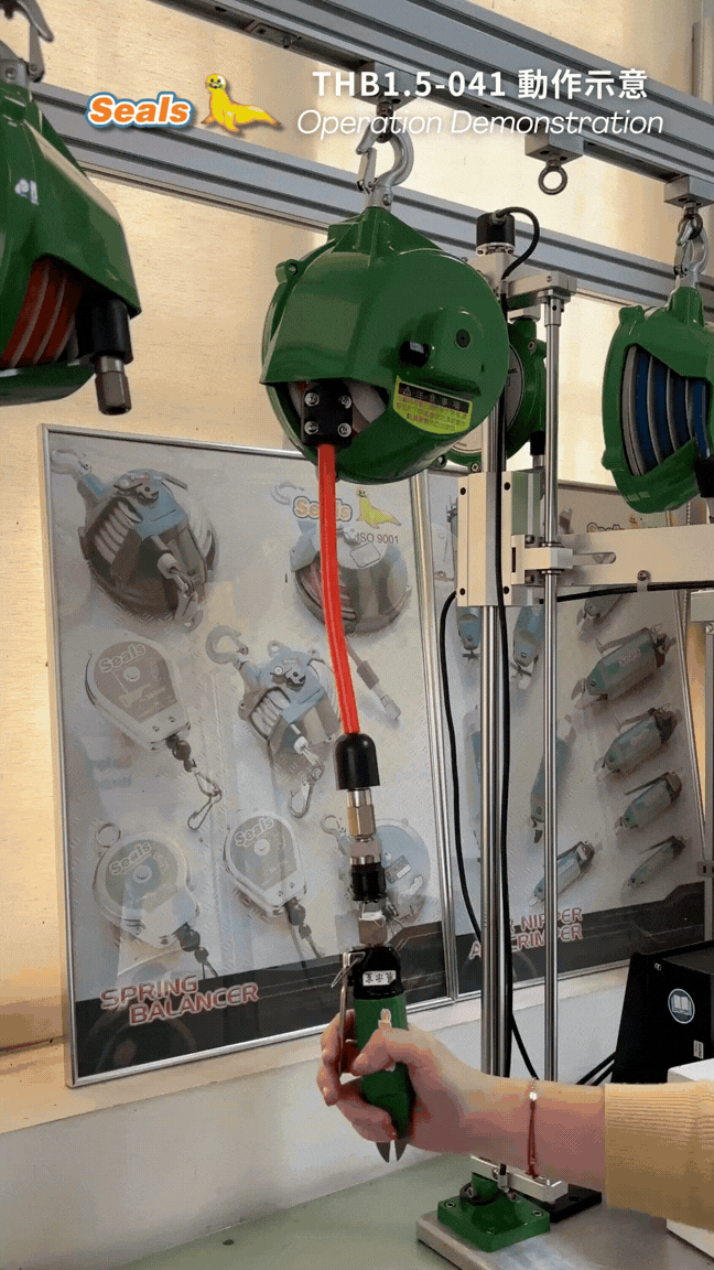 تم تصميم موازين خرطوم سلسلة SEALS THB-5 للأدوات الهوائية المتوسطة الوزن من 3.5 ~ 5.0 كجم. من خلال دمج خرطوم مضفر بقطر 8*12 ملم، يمكن أن يوفر تدفق هواء كافي لأدوات الهواء المتوسطة، مثل مفك الضغط ومفك البراغي بالزيت، وغيرها. في الوقت نفسه، مع توترها المرن المدفوع بالينابيع، تسمح لك موازنة خرطوم الهواء SEALS THB-5.0، 0.5 كجم ~ 1.5 كجم بامتلاك أداة هوائية بسهولة وسرعة وبشكل مريح. وتنظيف منطقة العمل وترتيبها وتنظيمها هو صورة خط الإنتاج الخاص بك. من خلال عجلة الدودة في سلسلة THB، يمكنك ضبط التوتر بزاوية صغيرة لمطابقة الوزن المحدد للأداة.
